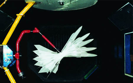 ③氣動力試驗技術—動態試驗 | ④FL-9低速增壓風洞:試驗段截面尺寸4.5m×3.5m,工作壓力0.1~0.4Mpa、Re=22×106/m,最大試驗風速130m/s(常壓)、90m/s(0.4MPa) |
